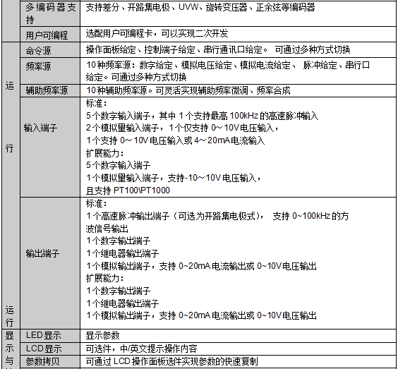 l 丰富的控制方式 除有速度传感器矢量控制、无速度传感器矢量控制、V/F控制外,还支持V/F分离控制。